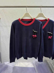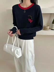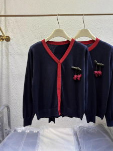 2025秋季新款韩版V领拼色针织开衫女长袖宽松显瘦百搭毛衣外套
