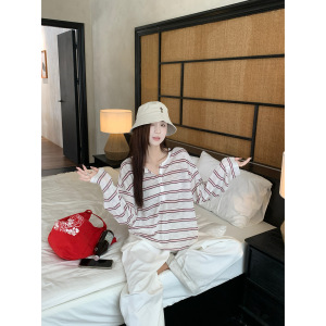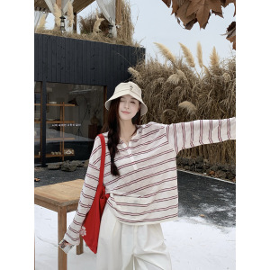 好物2025秋季韩版气质纽扣条纹防晒T恤罩衫松弛感休闲长袖女上衣