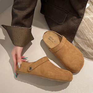 两穿超火包头半拖鞋女2025秋季新款小众圆头内增高懒人上班勃肯鞋