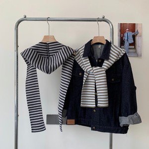 博主BI备休闲帽子围巾一体披肩假领子春秋保暖条纹毛线针织小坎肩