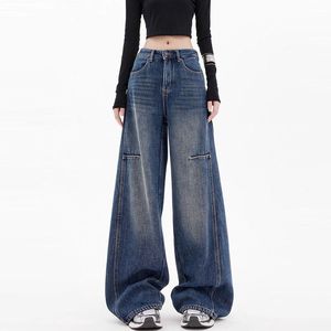 美式潮流古阔腿牛仔裤女春秋季新款设计感宽松显瘦拖地牛仔裤子潮