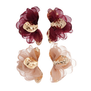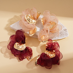 欧美夸张布艺雪纺花朵钢针耳环秋冬时尚气质小众高级感跨境耳饰女