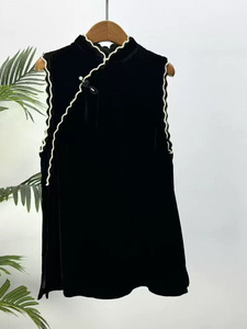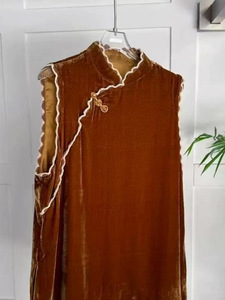 批发一件代发新款中式国风丝绒马甲中长款复古唐装立领坎肩上衣