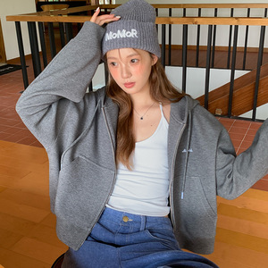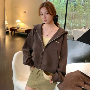 卫衣女2025秋冬新款休闲百搭慵懒感连帽外套宽松短款拉链开衫上衣