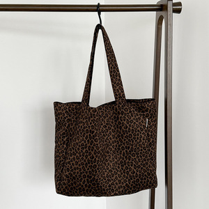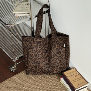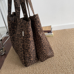 韩系小众豹纹帆布包女春夏新款休闲慵懒风单肩包大容量通勤托特包