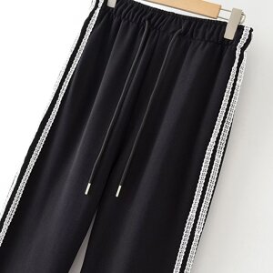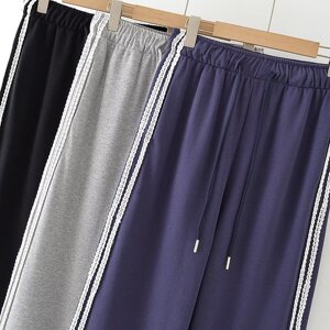 200斤胖妹妹秋装新款简约侧边花边直筒裤大码洋气休闲拖地裤8204