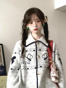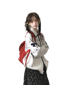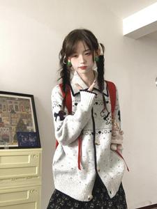韩系复古小狗提花软糯毛衣外套女秋冬宽松慵懒费尔岛针织开衫上衣
