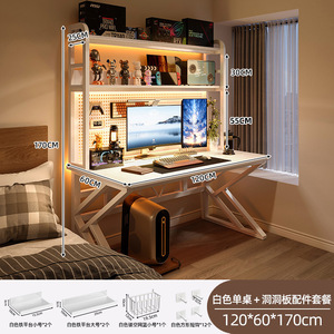 台式电脑桌卧室家用书桌书架一体桌子办公桌洞洞板电竞桌椅套装