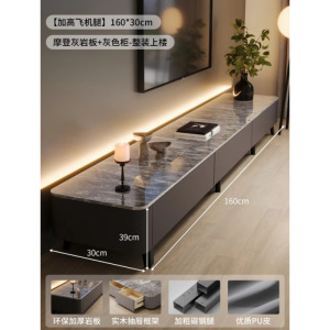 【落地电视柜】摩登灰岩板+灰色柜-黑色碳钢腿