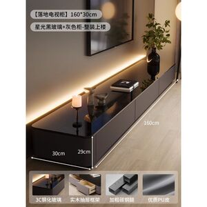 【落地电视柜】星光黑玻璃+灰色柜-黑色碳钢腿