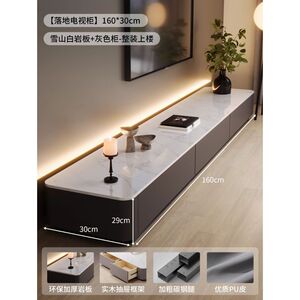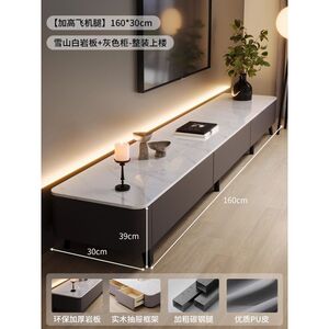 【落地电视柜】雪山白岩板+灰色柜-黑色碳钢腿