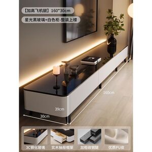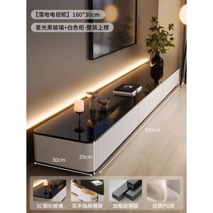 【落地电视柜】星光黑玻璃+白色柜-黑色碳钢腿