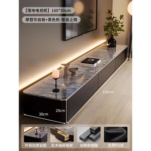 【落地电视柜】摩登灰岩板+黑色柜-黑色碳钢腿