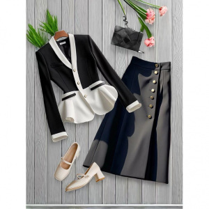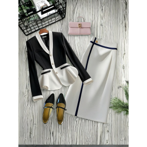 时尚套装女2025早秋新款法式独特气质西装外套简约线条装饰半身裙