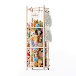木质毛绒玩具整理架家用客厅落地式玩具展示架墙角木质娃娃收纳架
