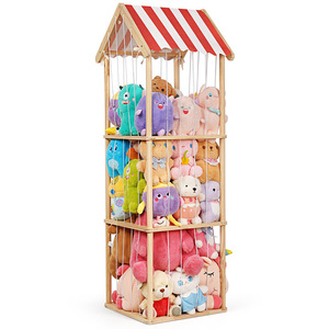 跨境木制毛绒玩具储物架简约家用儿童玩偶落地式收纳网整理收纳架