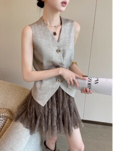 预售浅咖色复古马甲开衫女夏季2025新款洋气叠穿时尚气质上衣