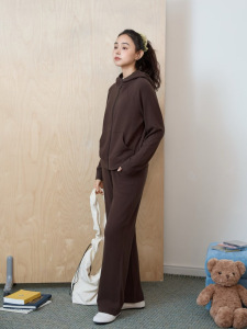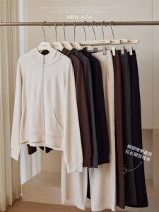 【套装】羊毛混纺 半圆女装运动2025秋季灰色连帽卫衣+裤子两件装