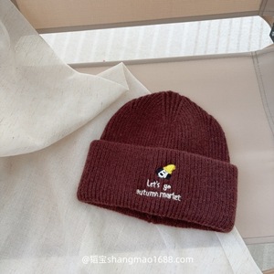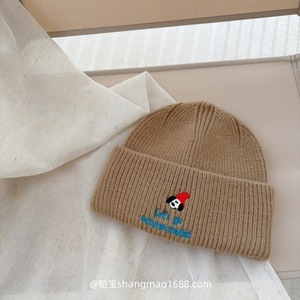 ins风可爱刺绣小狗男宝宝毛线帽百搭套头帽针织保暖儿童冷帽防风