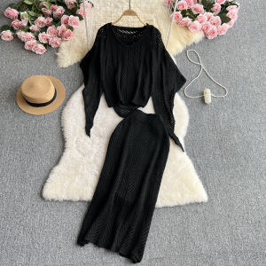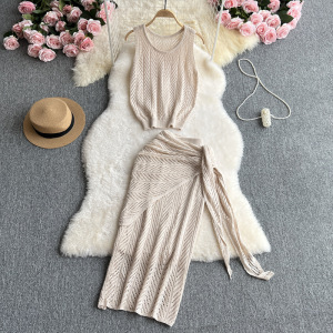 设计感休闲套装女夏季外搭不规则披肩外套镂空无袖背心高腰半身裙