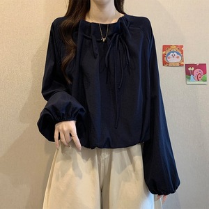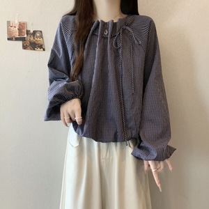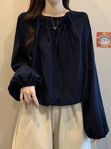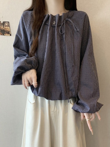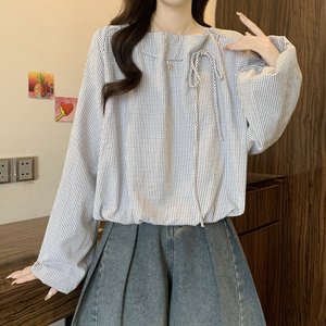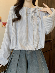 秋装2025新款爆款法式小资系带格子衬衫女设计感灯笼长袖短款上衣
