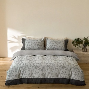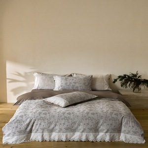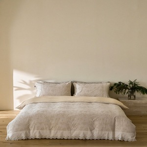 中式复古轻奢棉麻刺绣花边款微磨毛秋冬保暖四件套被套床单床品