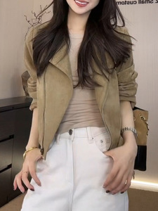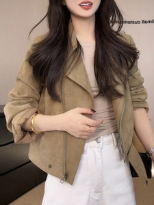 美式复古短款麂皮绒外套女2025春秋新款高级感小个子机车夹克上衣