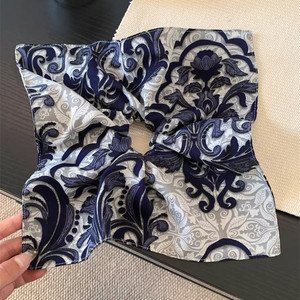 高级感复古图腾印花大肠发圈女韩系气质方形超大号扎马尾头绳头饰