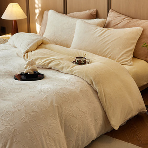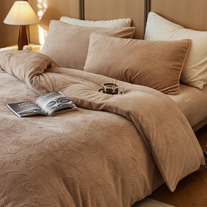 雕花牛奶绒四件套秋冬季珊瑚绒床单被套法兰绒床上用品三件套