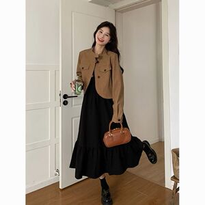 拉德短外套连衣裙套装早秋新款气质盐系显瘦长裙两件套新中式