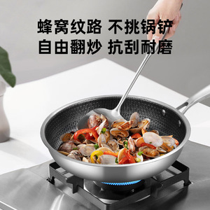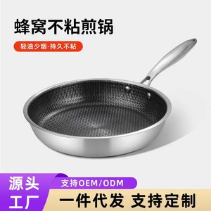 现货蜂窝不锈钢平底锅不粘锅家用煎饼牛排电磁炉燃气灶通用炒锅