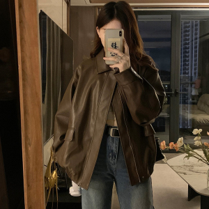 棕色小个子chic皮衣短外套女春秋2025新款美式复古棒球服夹克上衣