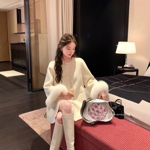 杨小卷 秋冬战 狐狸毛羊毛大衣女小香风双面呢富家千毛呢宽松外套