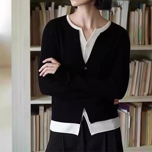 现货厂家批发 2025新款 假两件针织开衫女 毛衣打底衫上衣 女