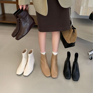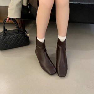 2025秋冬新款时尚短靴复古百搭简约坡跟短筒气质小方头短靴