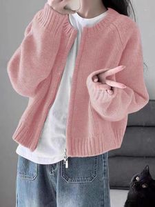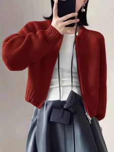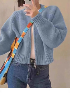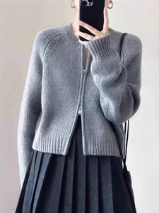 慵懒风双拉链毛衣外套女2025秋冬短款设计感小众简约韩系针织开衫