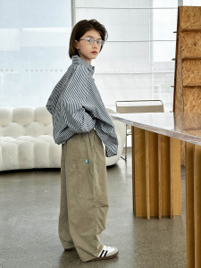 熊猫圆圆2025秋季儿童纯棉休闲裤 男童裤子水洗宽松直筒裤批发
