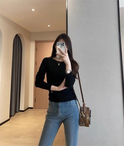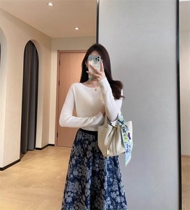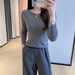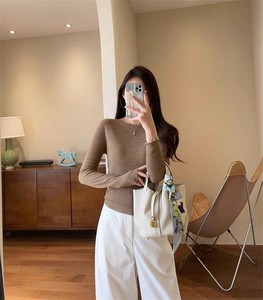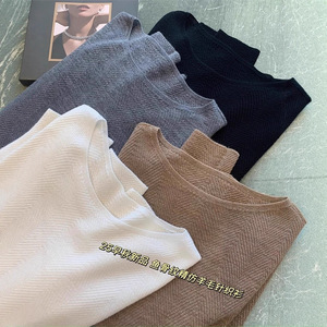 KO981美丽诺绵羊毛无缝一体鱼骨纹高弹一字领长袖针织衫2025秋