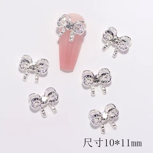 跨境新款蝴蝶结美甲饰品合金镶钻飘带金银色指甲装饰品小配件批发