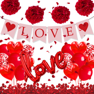 情人节拉旗气球套装二【2包花瓣/金葱螺旋】