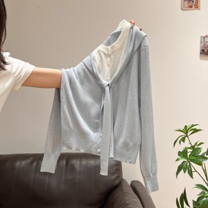 假两件设计感披肩针织开衫女2025早秋新款拼接撞色内搭打底衫上衣