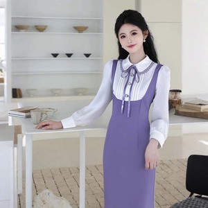 紫色假两件娃娃领衬衫连衣裙温柔富家千金感穿搭初恋miu系小洋裙