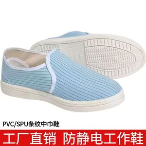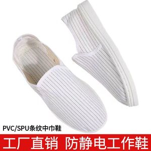 防静电鞋条纹中巾spu软底电子工厂无尘车间使用pvc防滑蓝白工作鞋