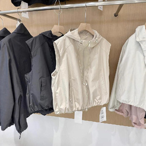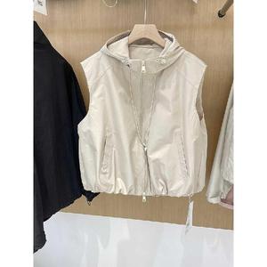 欧洲站2025春季新款女装欧货马夹连帽纯色时尚马甲坎肩女百搭显瘦