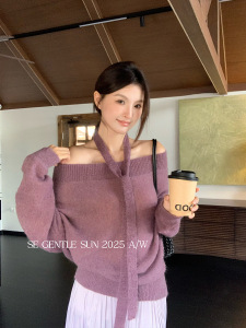 秀熙熙2025白标秋季气质挂脖羊毛针织打底衫毛衣长袖上衣女25426
