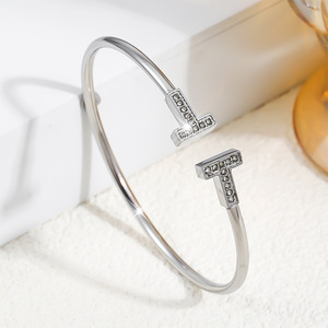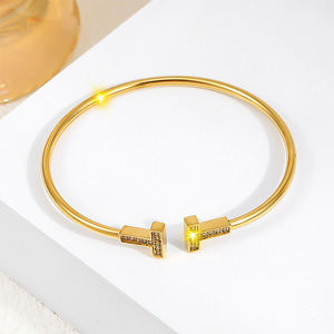 跨境不锈钢手镯T形开口简约时尚手镯18k镀金不掉色钛钢手镯批发女