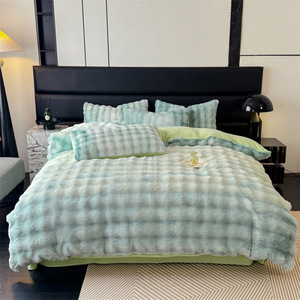 2025秋冬新款牛奶绒懒兔毛四件套冬季加厚兔兔绒珊瑚绒床单被套