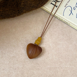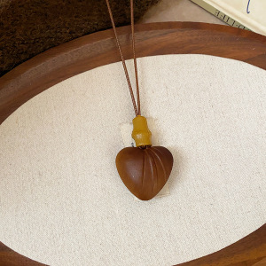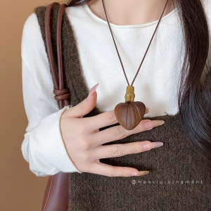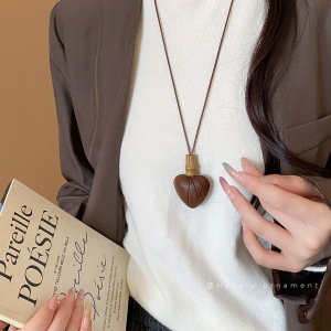新中式复古爱心木质项链简约时尚个性百搭毛衣链气质高级感项饰女