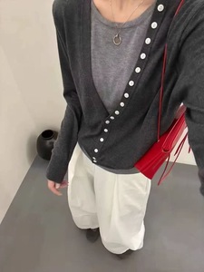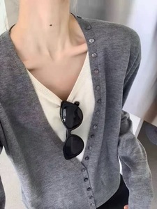 时尚V领多排扣假两件羊毛针织衫女2025欧货宽松显瘦百搭上衣潮流