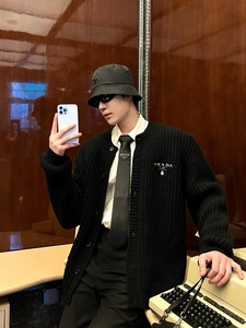 高定男女款P家三角字母刺绣LOGO纽扣开衫针织衫毛衣外套男女
